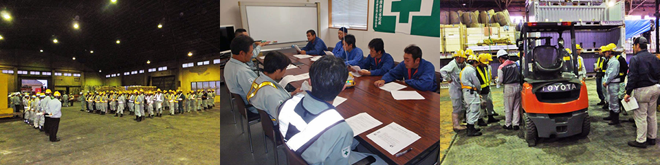 当社は港湾労災防止協会に加盟しており、毎月パトロールの実施とそのパトロールにおける安全対策会議を開催し、「安全・快適な港湾」を目指し港湾全体の安全及び衛生の普及活動を行なっています。
