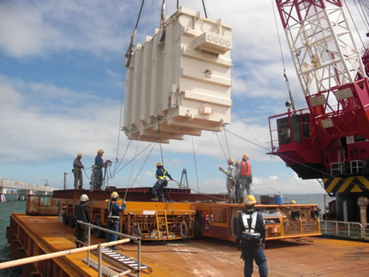 - 当社は長尺物・重量物など大型貨物輸送の県内トップシェアを誇っています。船舶の手配・荷役・仮置き・据付工事まで、現地状況に合わせた効率の良い作業方法をご提案しております。 関係官庁の申請などトータルでのサポートと高い技術を提供します。